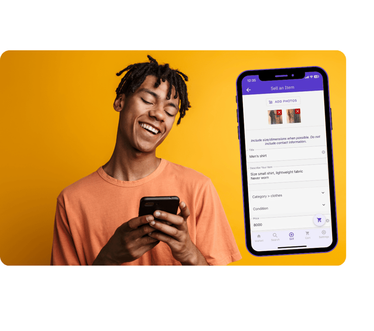 Snap a few pictures, add a short description and a price and you're all set!